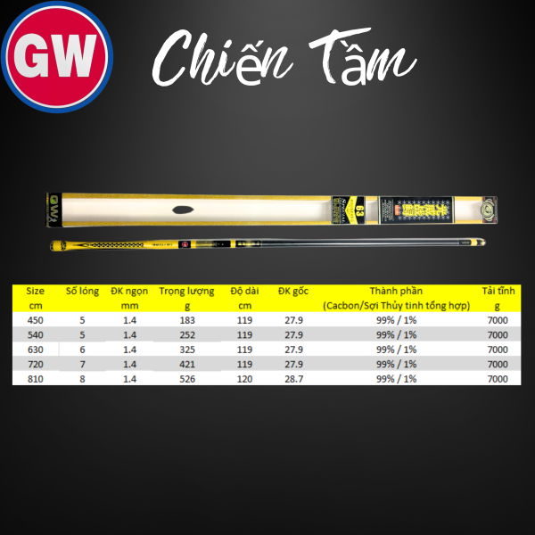 “Cần câu tay GW Quang Uy Chiến Tầm 6H chuyên săn hàng, hãng GW hướng tới các cần thủ câu đài cá tầm, cá trắm đen loại khủng. Nhấc tĩnh 7kg, câu cá lên đến 15kg độ cứng 6H đây xứng đáng là một cây cần câu đơn đài mạnh mẽ và chất lượng nhất.