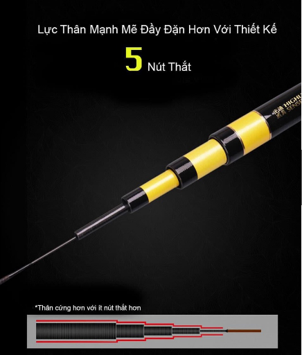– 6,3m – 6 khúc – Dài 119cm – 325g – Φ gốc 27,9mm – Φ ngọn 1,4mm – Nhấc tĩnh 7000g